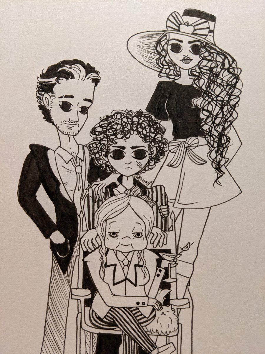 Inktober Day 9: Apple Here is our mob family. Starting from the left we have Father Rome, at the right Ginger Gold (the trophy wife), in the upper middle the only child Jonathan, and at the bottom Granny Smith (don't be fooled, she's tougher than she appears.) #inktober2021