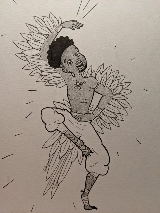 Inktober Day 18: Sunflower Such a beautiful, positive, and happy flower deserves legs to dance, and wings to fly high above the sky. This Harpie can do both! #inktober2021 #Sunflower #harpie
