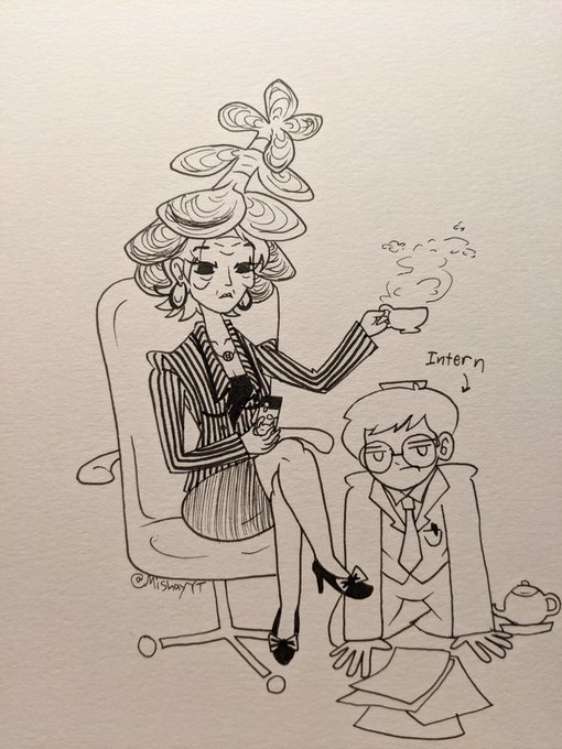 Inktober day 19: Jade Plant Also known as the "money plant" this botanical beauty is popular in Asia due to its legend of producing financial prosperity. She is a powerful and intelligent business woman, but can be cruel at times to balance out the work environment #inktober2021