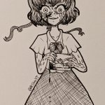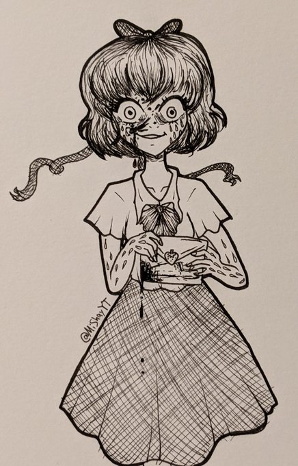 Inktober Day 25: Strawberry This seedy Yandere has a special gift she made especially for you, and don't worry; the splatters on her face are strawberry jam... I think. #inktober2021 #yandere #strawberry