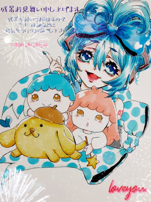 残暑お見舞い申し上げ申し上げます。 2時間のささっと描いたのでお見苦しい所もございますがすみません💦8月11日~20日までTwitterお休みさせていただきます☆楽しいお盆にして下さい🙇♀️#アナログ絵 #初音ミク #サンリオキャラクター