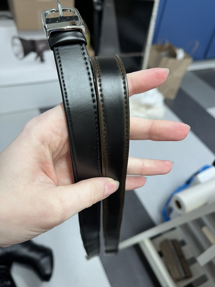 Before and after weathering with @AngelusPaintUK Pleather wrapped over foam to look like leather belts for Yennefers boots. #cosplaywip #cosplay
