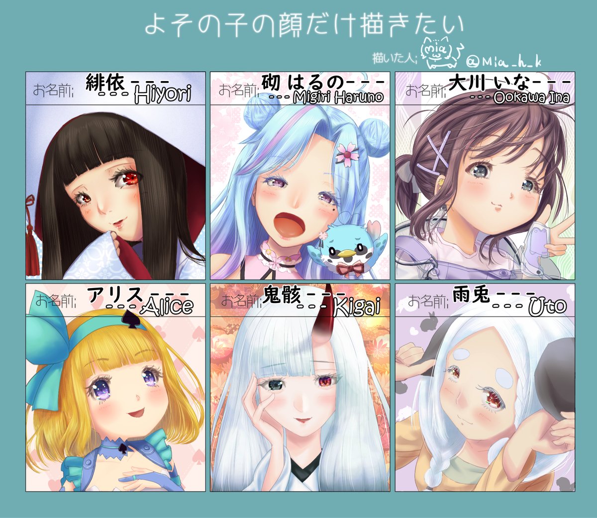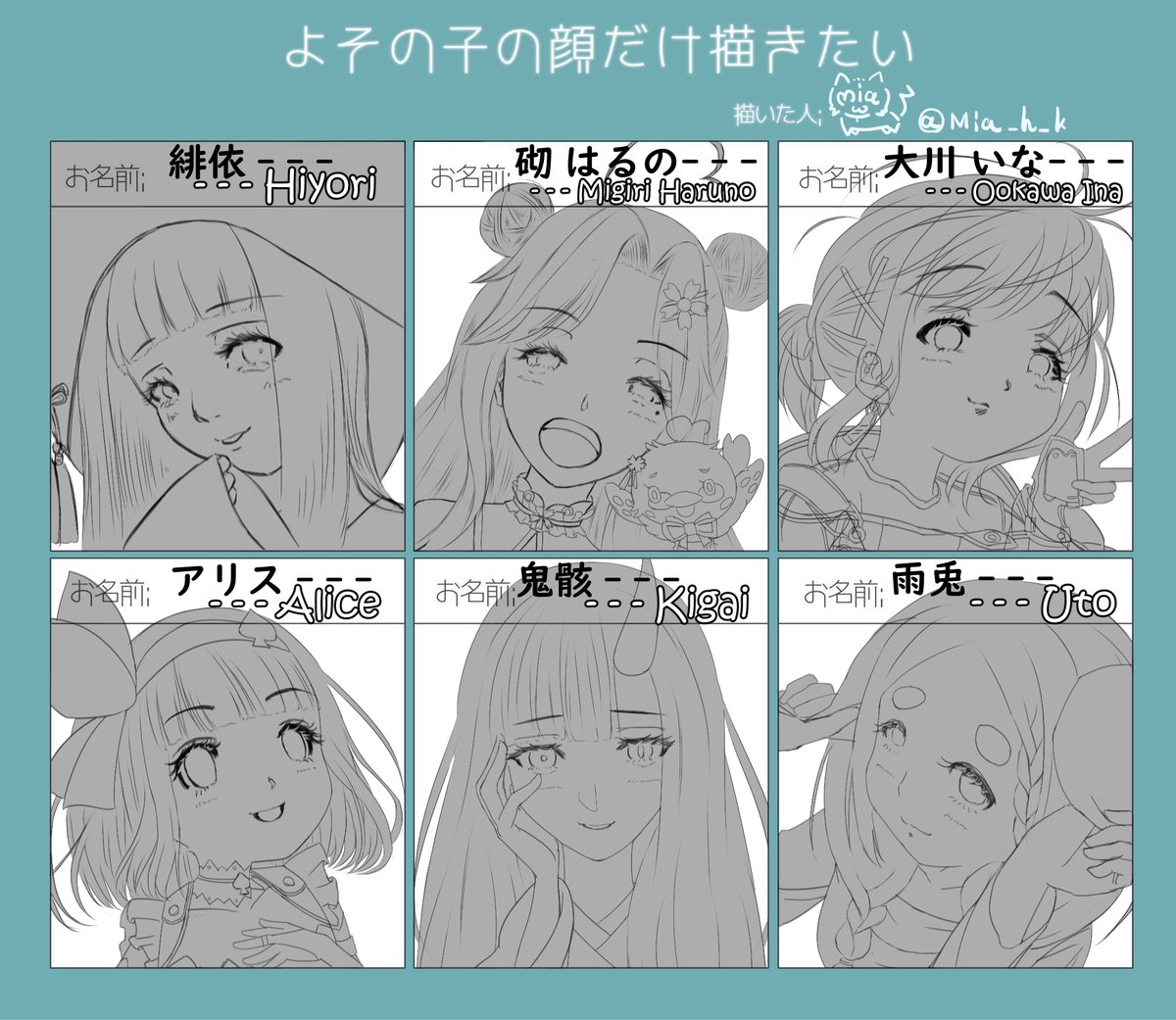 #よその子の顔だけ描きたい 完成しました! 素敵なよその子を提供、協力して頂いた方々のツイッター↓ 左上から ラッコちゃんさん(@ra_cco) 砌はるのさん(@migiri_haruno) 五七翔二さん(@goshichi_shoji) Hirosanさん(@Hirosanx) しらたまさん(@shira_otama) かがりさん(@uni_uni_Kagari)