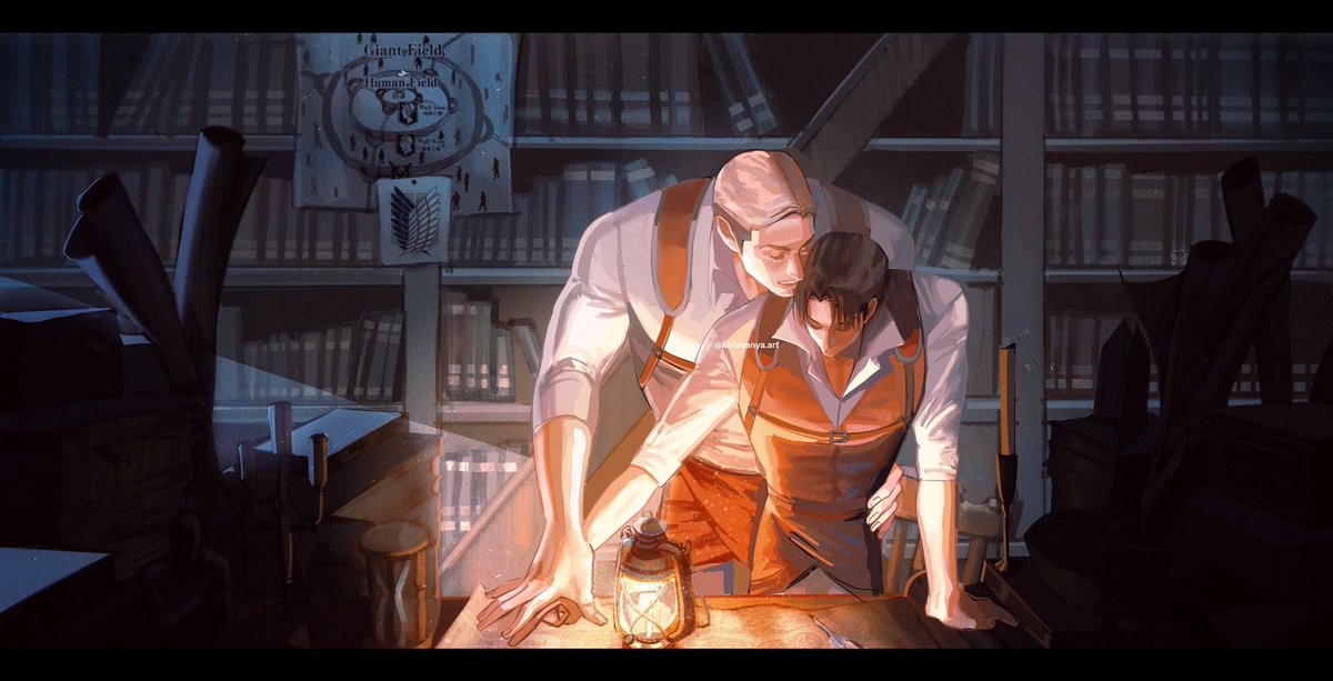A day of Erwin & Levi - part 4 . Late night talk🌛 Wanna depict the moment where Erwin and Levi have a lovely environment 💓 #attackontitan #aot #erwinsmith #leviackerman #erwin #levi #fanart #night #procreate #surveycorps #shingekinokyojin