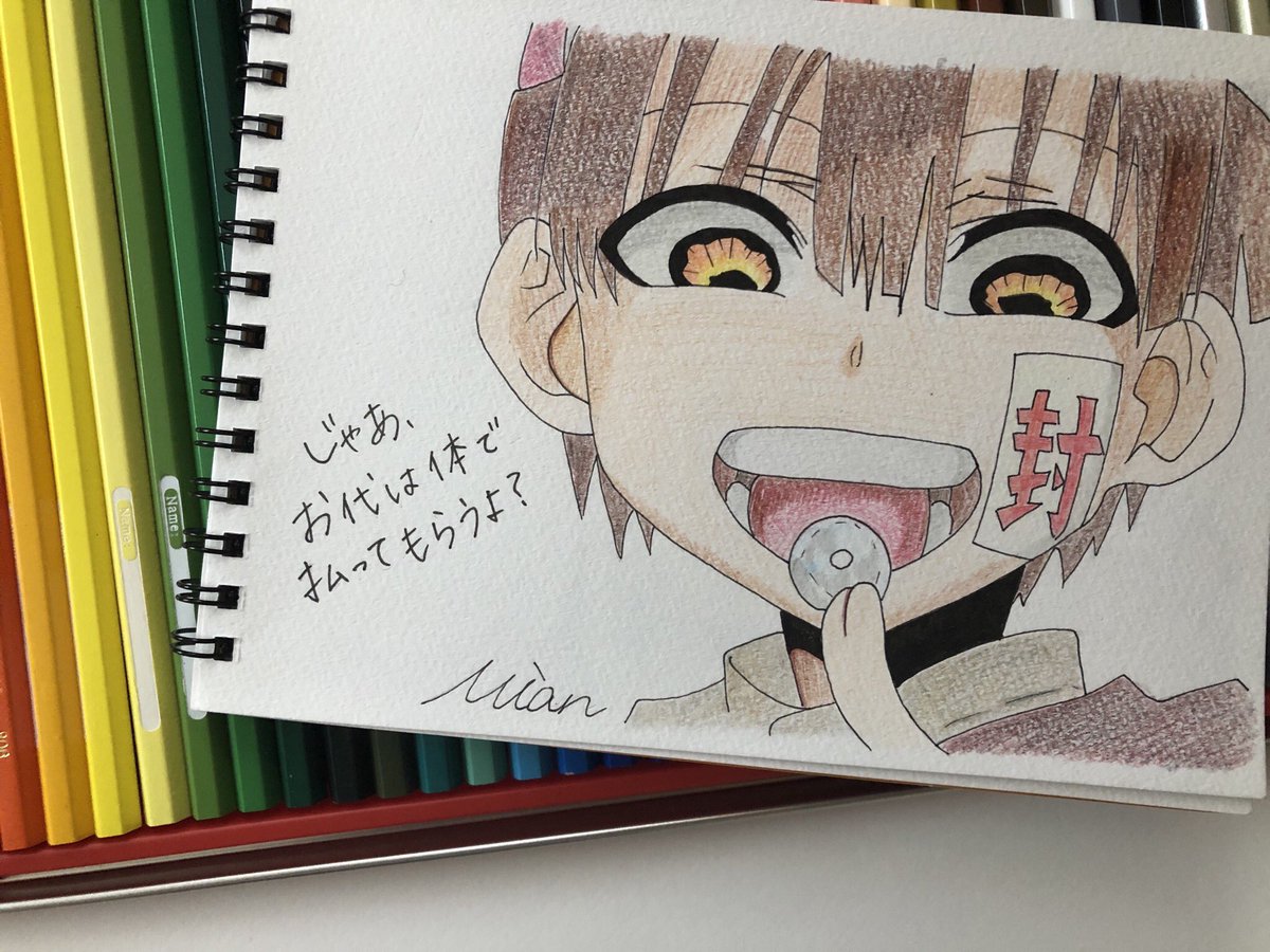 サインめんどくさくて普通にしました。この顔このセリフでどハマりしました。 #地縛少年花子くん #柚木普 #イラスト #模写 #色鉛筆画 #イラスト好きな人と繋がりたい #絵描きさんと繋がりたい