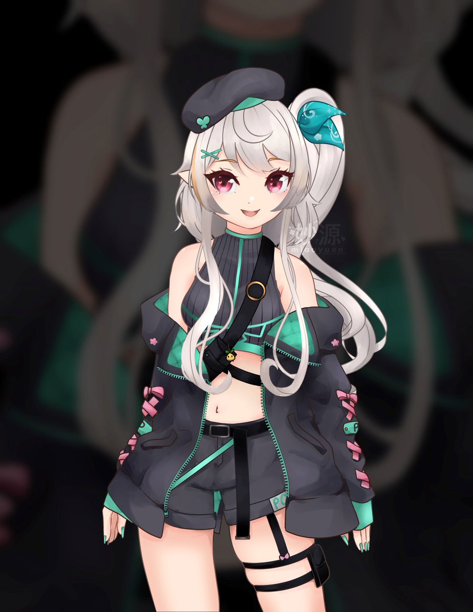 #ニシゾノート 🐬🌱 Chigusa is so cute!! I love her designs a lot 💜 I couldn't decide which version I liked more so I'm posting both My part of a #nijisanji oshi art trade with @daveednh ✨