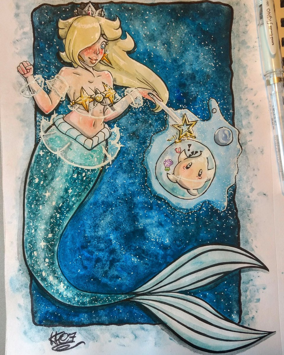 Another one among my previous draws of 2017 :) #drawing #handmade #june #mario #mariobros #mermaids #nintendo #rosalina #stars #traditional #lumas #princessrosalina #mermay #art #fanart #traditionalart #watercolor #watercolorpainting #fanarttraditionalart