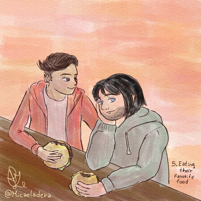 #InktoberWithOcs2022 #draw #drawing #inktober2022 #inktoberday5, eating their favorite food día 5, comiendo su comida favorita ya era hora de tener un dibujo de ellos dos, festejando el orgullo comiendo patys en un puestito (?