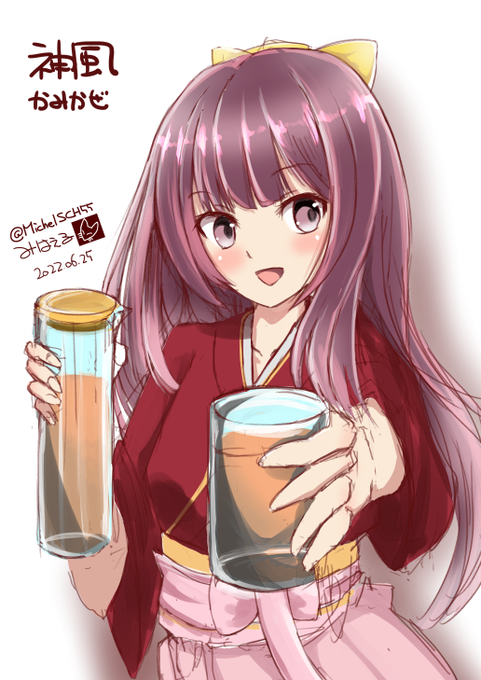 神風ちゃん描いてみました ('ω')ノ 「提督、麦茶どーぞ!」な感じ #艦これ版深夜の真剣お絵描き60分一本勝負 #艦これ版真剣お絵描き60分一本勝負_20220625 #神風 #艦これ