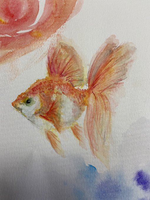 1 7 水彩画 「金魚」 #イラスト #水彩はじめました #絵 22/09/05 20:41