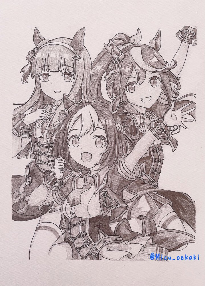 今月は模写しかしてませんでした! 来月はスマホとかでも描こうかな… #今月描いた絵を晒そう #ウマ娘 #スペシャルウィーク #サイレンススズカ #トウカイテイオー #ツインターボ