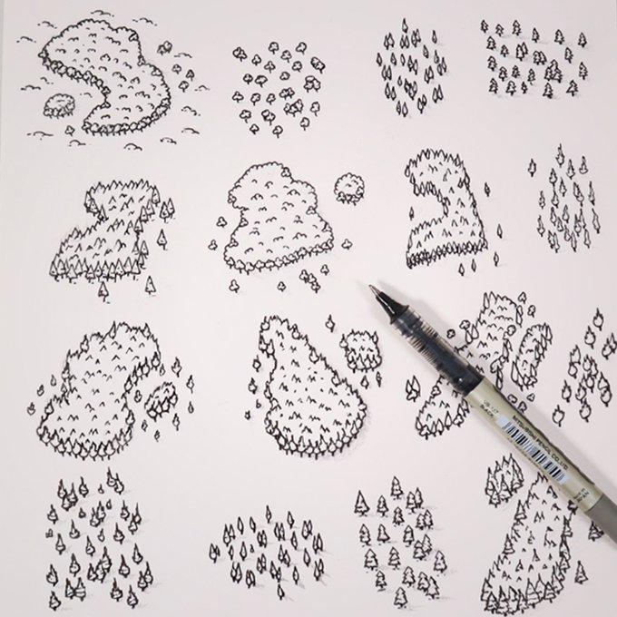 I would love to be able to draw amazing fantasy maps, so I’ve started to practise and see if I can improve. First out: Lots of different trees!🖌️🎨☕ Thank you so much for your tutorials and videos: Maps by Owen, @MapEffects, & Toby at @DarkRealmMaps #dnd#dndart#dnd5e#ttrpg