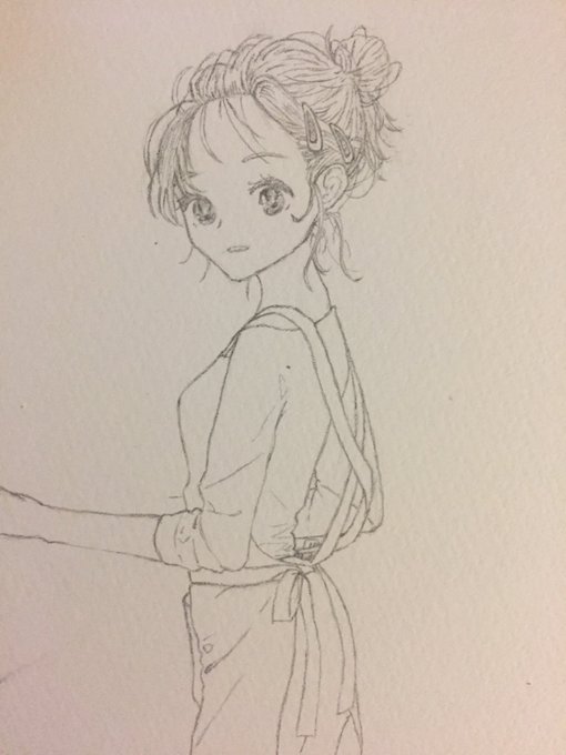 ハーフアップとお団子ヘア 自分の描きたい髪型が見えてきてた というか自分の好きな髪型がやっと明確になってきた感じ #イラスト好きな人と繋がりたい #アナログイラスト #お団子ヘア