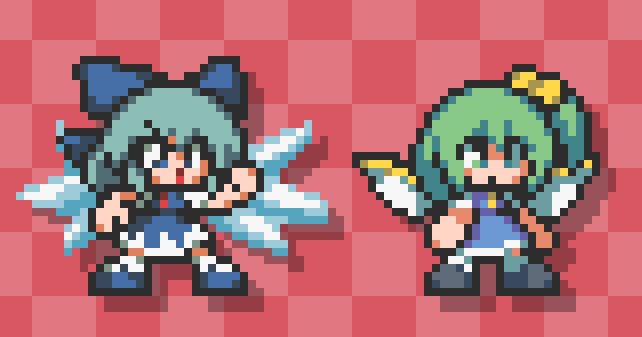 チルノちゃんと大妖精(新規)。 #東方Project #ドット絵 #pixelart