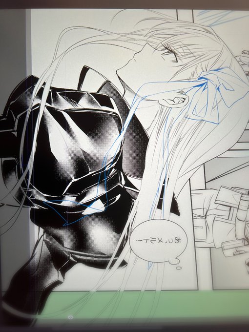 そして今現在は16pの セット限定おまけラフ本、描いてるます 漫画8pに増えた...へへっ🥹 青いインクで印刷される予定...!です💪