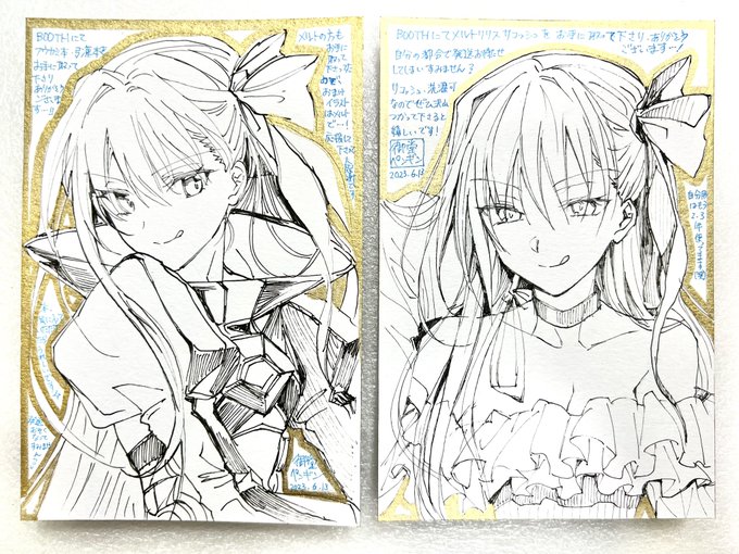 【続・描いてます メルトリリス色紙】 出来れば10枚は用意できたらと思っております🖼🖊️ 色紙の頒布はBOOTHにて、21日(火) 00:01(JP)スタートを予定しています。 C101ブランケットとスマホスタンドの 再販受注の締切も21日中となっております。そちらも是非チェックして下さると嬉しいです🥹🙏
