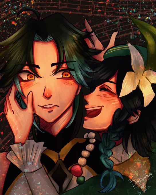 Brain food 😌😌😌 got a sore throat and headache... Also high gastric acid.... So I'mma sleep the whole day dreaming this ship....even tho assignment deadline piling up for tmrrw. . . #GenshinImapct #venti #XIAO #xiaoven #Shipping #bl #artistsontwitter #digitalart #asupan