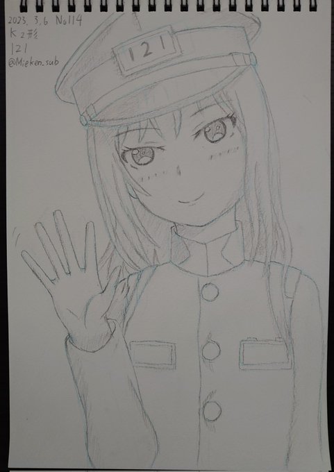 柴口(@2000akaidensya)さんのオリキャラの烏丸みかげさん描きました 出発監視中のキリっとしたかっこいい車掌さん 2023 05 06 №108 #鉄むす系ファンアート(よその子) #烏丸みかげ