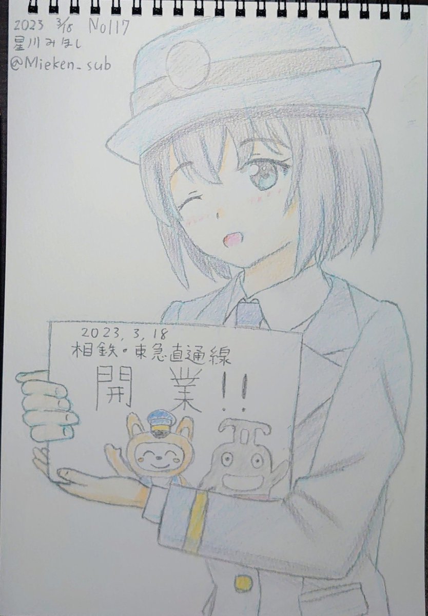 (お題箱)相鉄東急直通線がまもなく開業… そんなわけで星川みほしちゃんお願いします そうにゃんぬいぐるみを持ったみほしちゃん描いてみました やっぱ制服はこっちの方が可愛くて好きだわ 2023 03 23 D№104 #鉄道むすめ #鉄むす系ファンアート #星川みほし