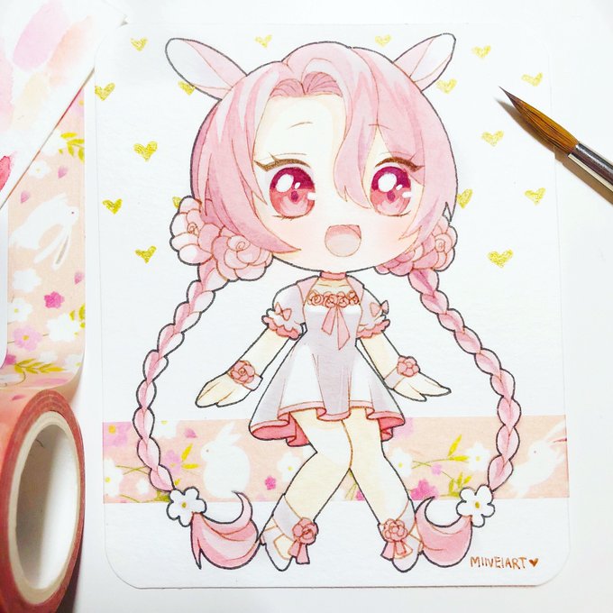 #inktober2019 day 16: this is an art trade with @rourouki 💖 of her beautiful OC Sakura Process available to patrons at patreon.com/miiveiart #washitape #watercolor #chibi