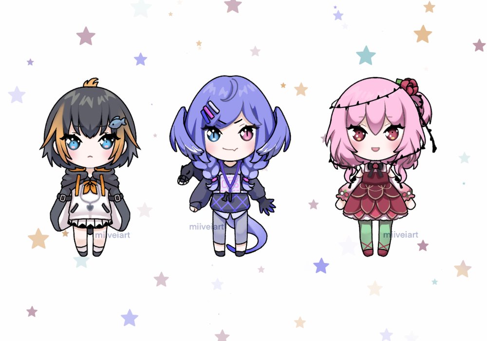 I drew simplified chibis of #holoMyth for my monthly patreon~~ #gawrt #ameliaRT #callillust #artsofashes #inART