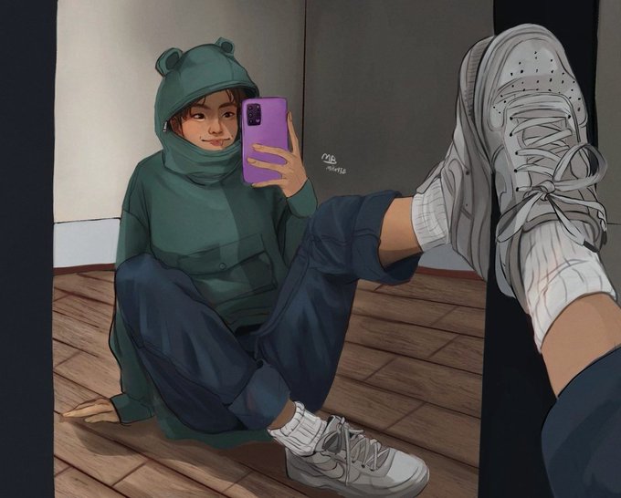 saw a cute frog hoodie online and thought it would look good on hobi 🥺 #btsfanart #JHOPE #BTS