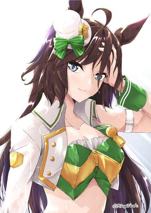 ■マーベラスのマーベラスが強調されたマーベラスな勝負服■ イクノ「これは『マーベラスさんのお胸が強調された素晴らしい勝負服』ということですね」 ネイチャ「うん、これは私にもわかる」 マベちんを描いてマベちんを引く!( ✧Д✧) #ウマ娘 #マーベラスサンデー