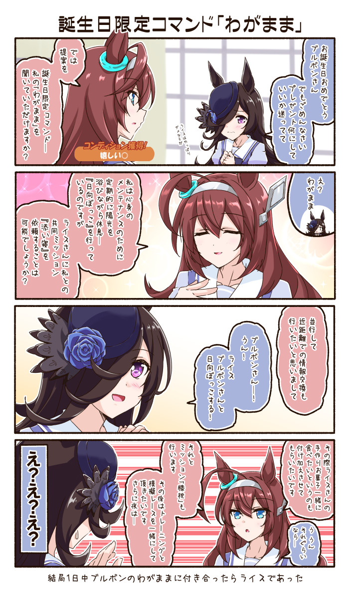 ■ウマレーターの活用法■ シリウスはダイヤちゃんのぶっ飛んだところが結構好きそう(笑) 新シナリオが凱旋門賞関連って聞いたときに、正月ダイヤちゃんのイベントでのシリウスと会話を思い出して出たネタです。あれが前振りだったら面白いな~ #ウマ娘 #サトノダイヤモンド #シリウスシンボリ