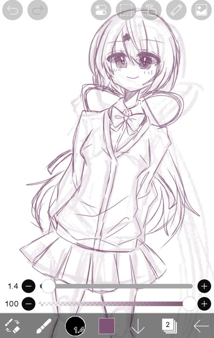 #このタグを見た人はラフ画とその完成絵を見せる 実は着色以外は電車の中で描いてたり