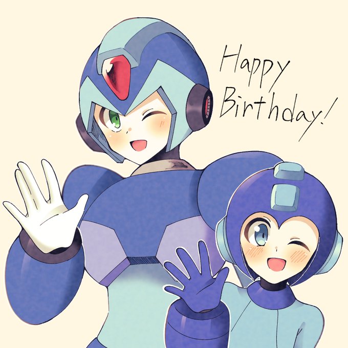 母の誕生日と母の日(大遅刻)のプレゼントでエックス君とロック君描きました #ロックマン #ロックマンX