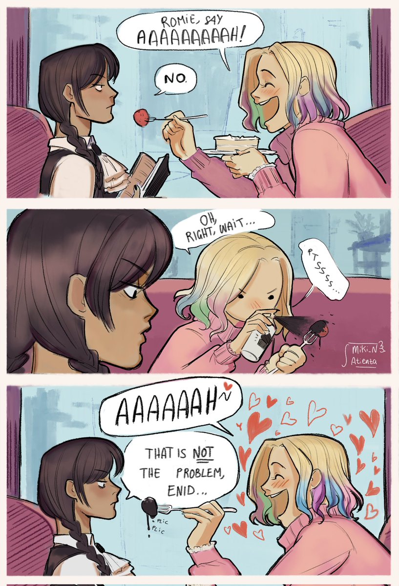 Romie_say_AAAAH! part 2 finally!! or as I call it, Wednesday struggling for 2 whole minutes it's easier to just let her do it part 3 will be last, it's a trilogy- #wenclair #wendnesdayaddams #wenesdaynetflix #wenclairfanart