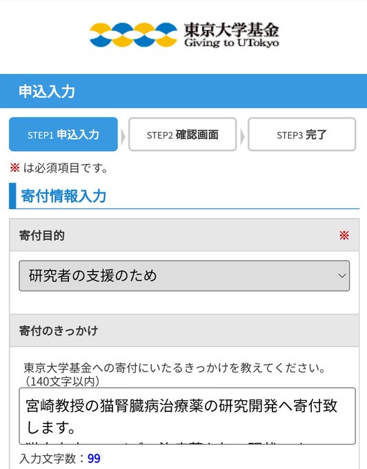 猫の腎臓病に対する薬の開発だそうで、コロナの影響で研究が停滞し資金難とのことなので寄付致しました🐈 utf.u-tokyo.ac.jp twitter.com/jijicom/status…