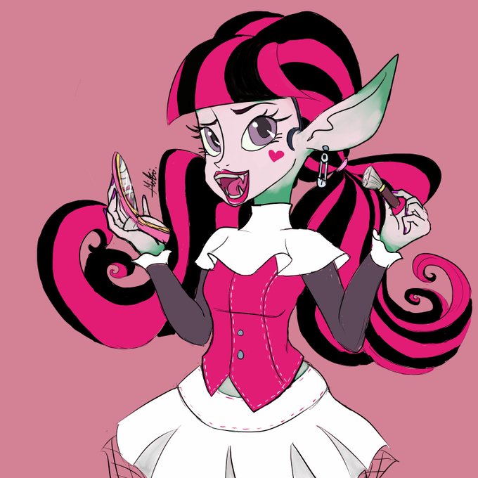 Day 15 of gobtober: Goblin in cosplay "Wait! Don't take any pictures yet, I'm not done with my makeup!!" She's cosplaying Draculaura from Monster High! prompt by @/Uri_V_Art #gobtober2022 #gobtober #cosplay #gobtoberday15 #goblin #sketch #monsterhigh #draculaura