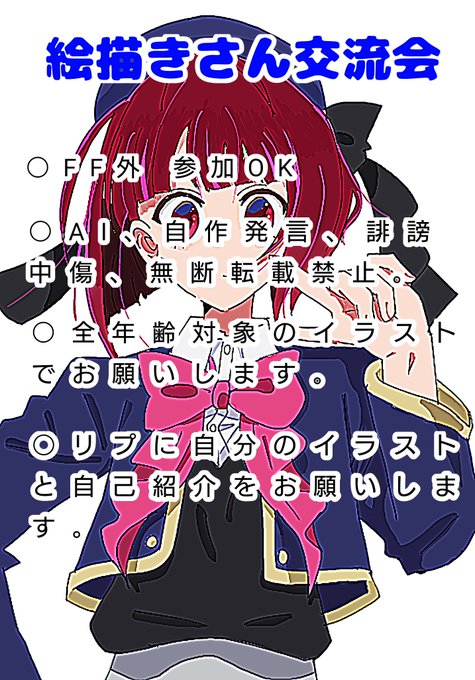 47 227 #絵描きさん交流会 #拡散RT #絵描きさんと繋がりたい フォロワー1000人達成しましたので 交流会を開かせて頂きます。 よろしくお願いします! 23/02/23 15:19