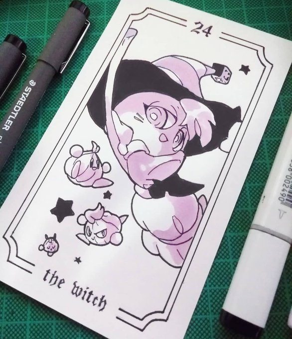 #KirbyTarot number 24!! ٩̋(ˊ•͈ ꇴ •͈ˋ)و The Witch! ✰ ✰ ✰ #Kirby #星のカービィ
