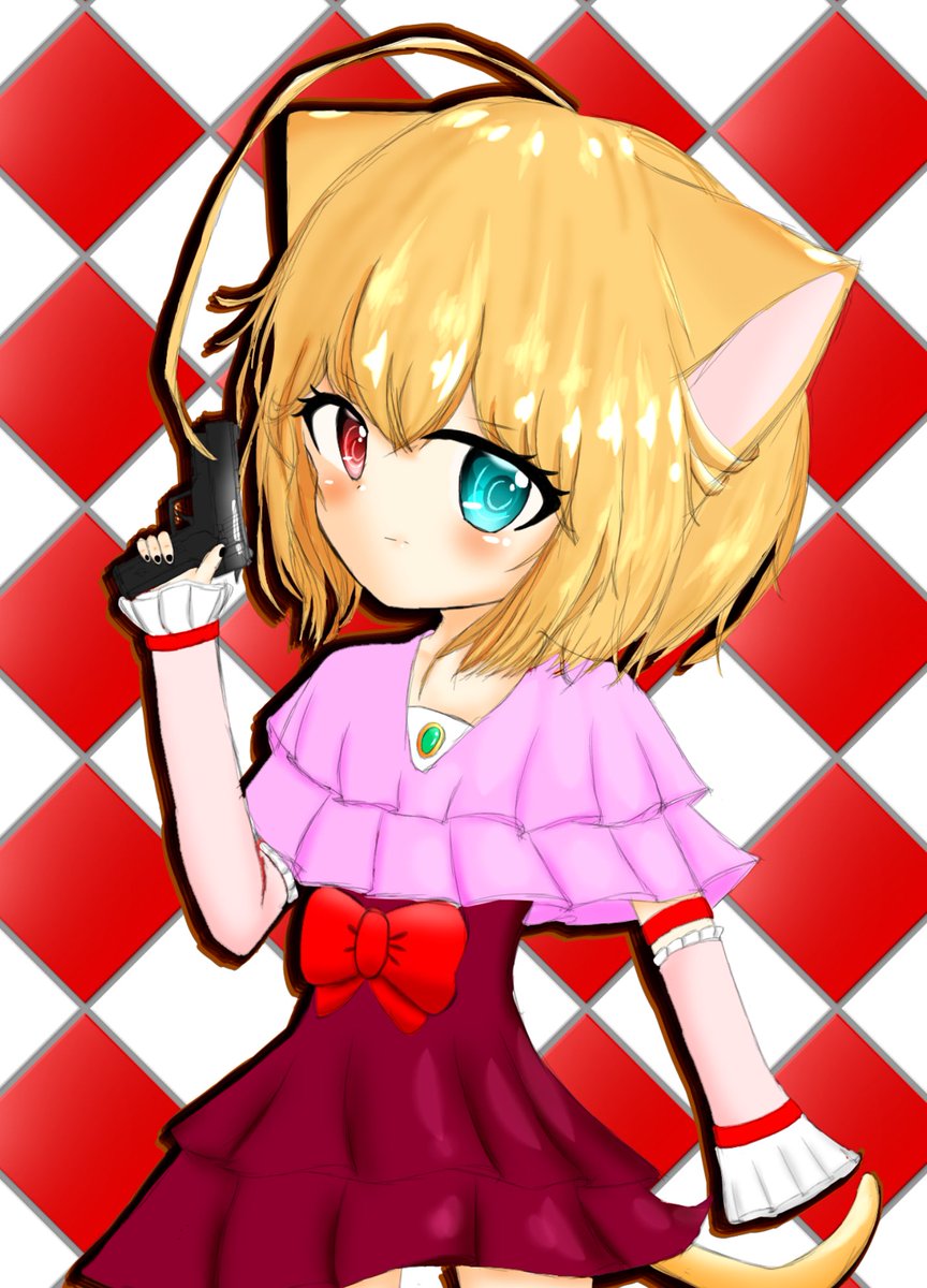 #お絵描き 金髪美少女猫耳オッドアイガンナー描きました