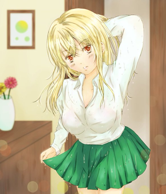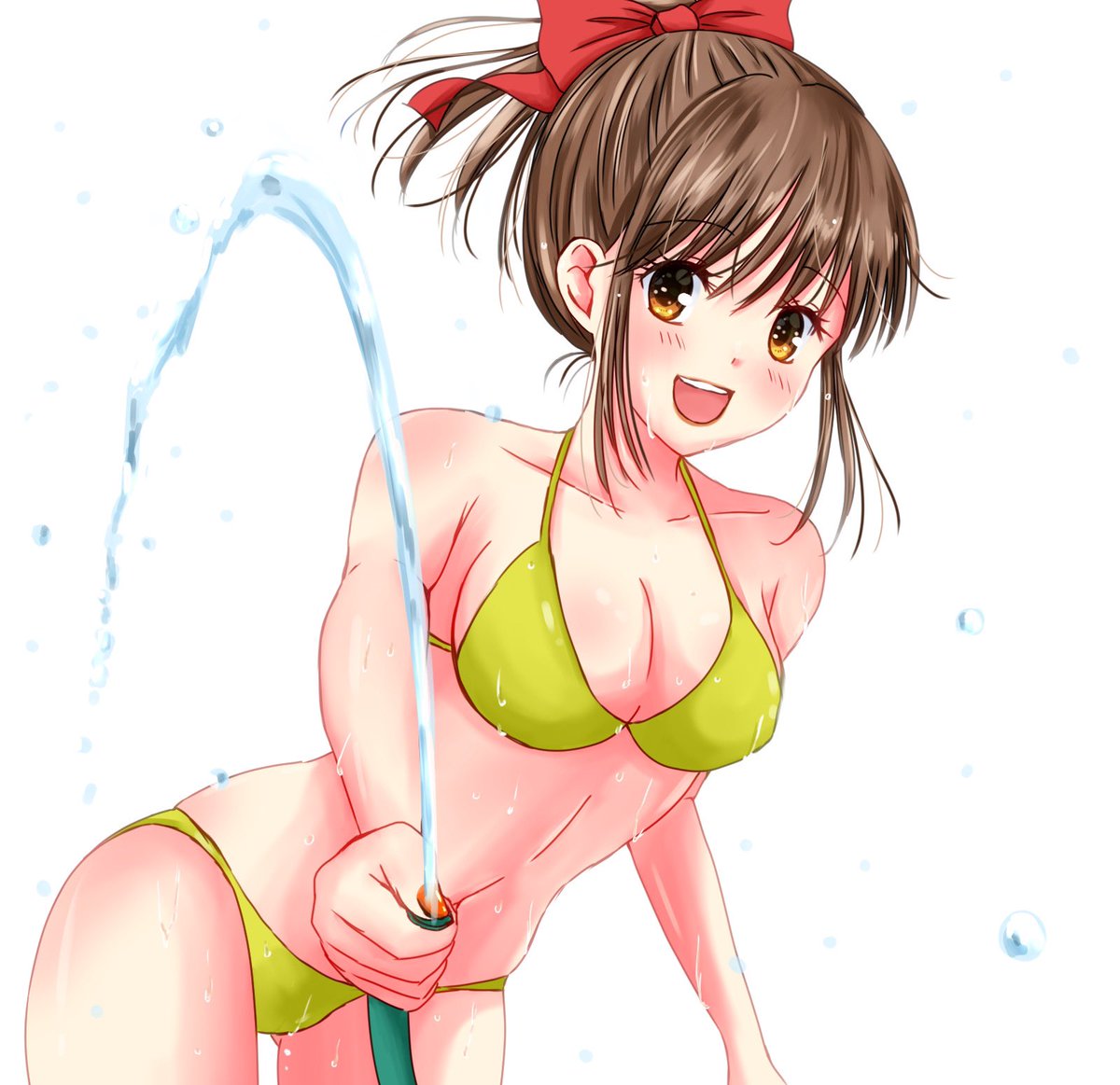 水遊び #女の子 #水着 #ポニーテール #イラスト #絵 #漫画 #巨乳
