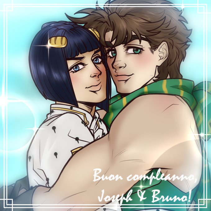 Two beautiful guys celebrating a special day! Feliz cumpleaños, Joseph y Bruno! #ジョセフ・ジョースター生誕祭2021 #ブローノ・ブチャラティ生誕祭2021 #JosephJoestar #BrunoBucciarati