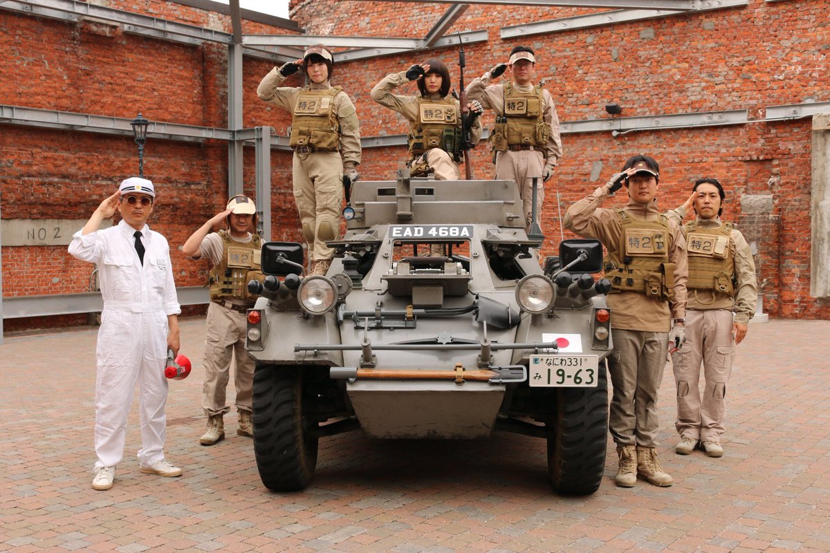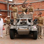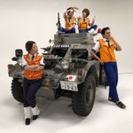 今日も #ミリタリーアンティークス大阪 で宣材撮影。今日は昨日までのレイヤーさん達とはがらりとイメージが変わって、英軍の軍装をしたおじさん達が実物の軍用車や装備品を使って張り切って撮影しています。w(*≧∀≦*)
