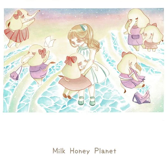 Elephanta and Giraffey are eating delicious midnight snack. If you want to eat with them, welcome to cross the mirror of miracle and enter the Milk- Honey restaurant. #illustration #painting #draw #artist #watercolor #art #elephant #milkhoneyplanet #插畫 #手繪 #水彩 #藝術