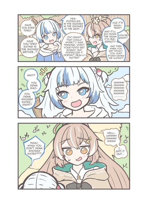 Gura and Mumei discuss eating and drinking~🍡🍵 #gawrt #drawMEI