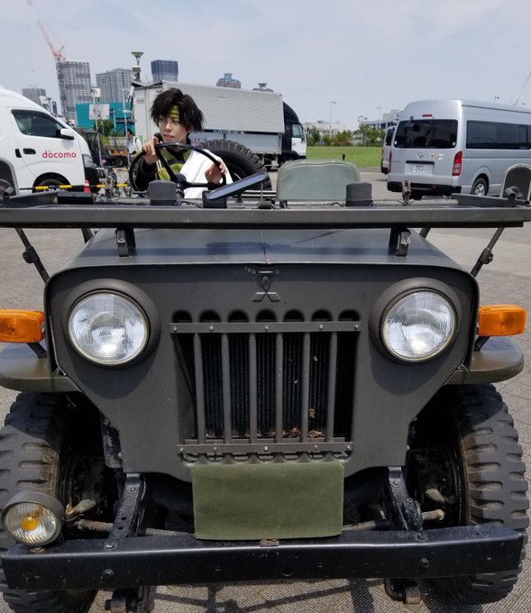 防災公園で”今年も”ジープに乗って肩にちっちゃいジープのせてます🐉︎💕︎ 快晴ですね🌞 #エアコミケ #コスプレ