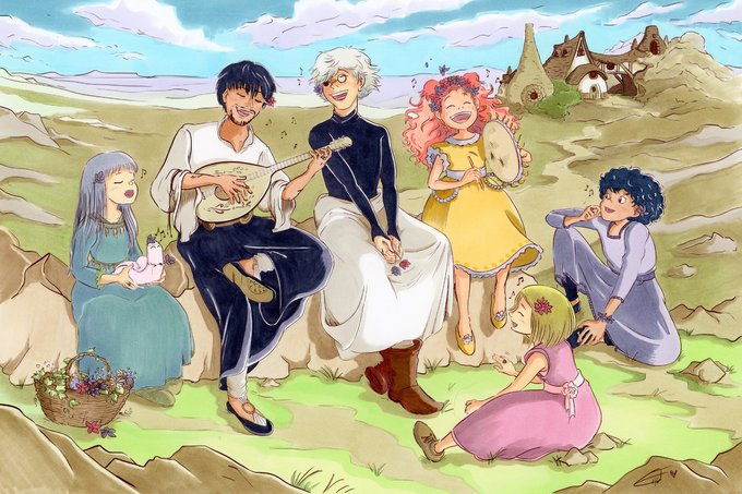 Olruggio teaches everyone the songs from his childhood! It's a lovely way to spend a day, singing together. "Northern Songs" in color!🎶💙✨ #witchhatatelier #Δ帽子 #fanart