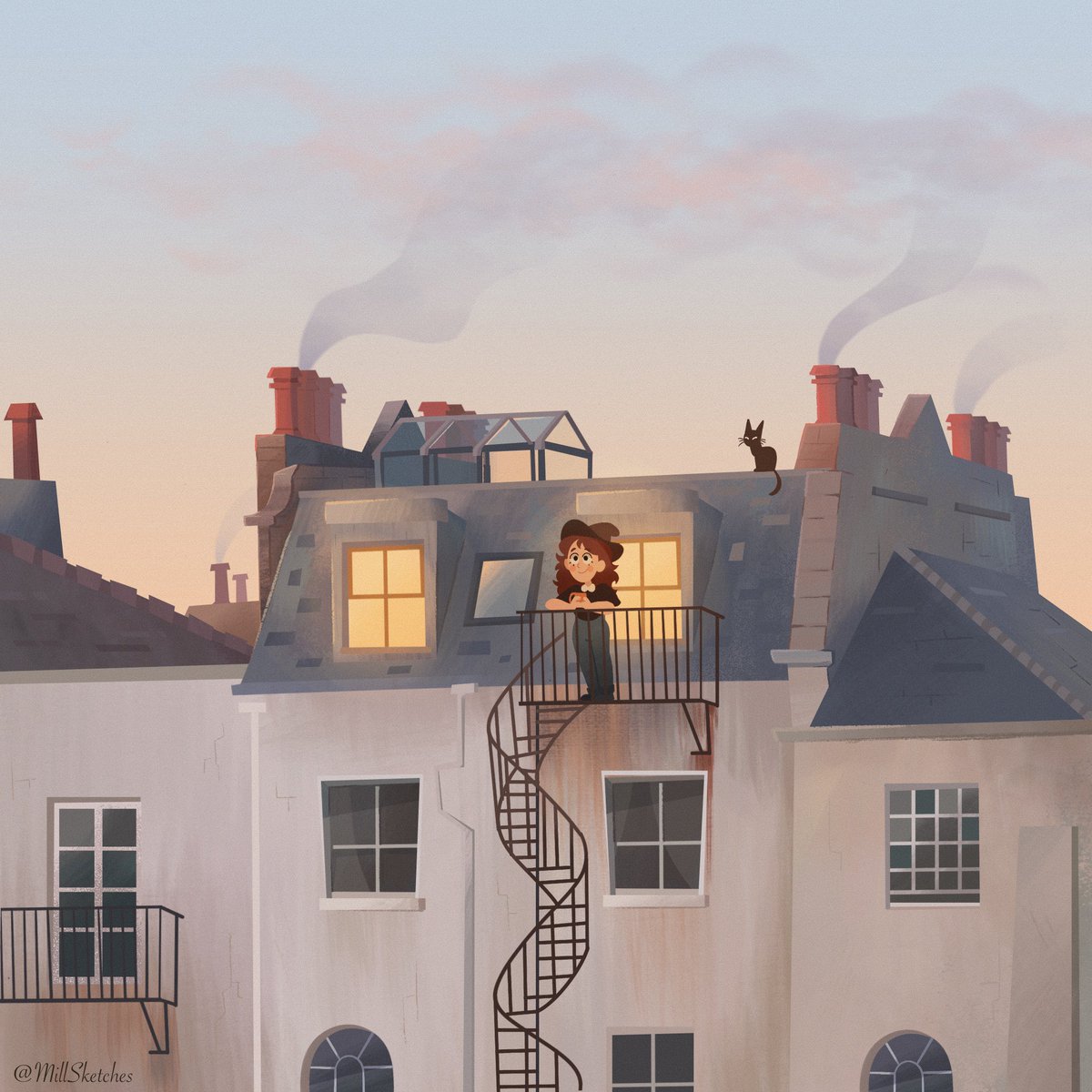 Painted this illustration of a building outside my old flat window, while following @izzyburtonart online course on @Domestika thanks Izzy for sharing all your secrets with us! I feel like I’ve learnt so much 😁 #illustration #art #backgroundart #animation