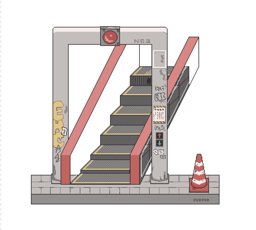 9 53 ちまちま打ってるドット絵の進捗 making escalator. #pixelart #ドット絵 22/04/10 18:56