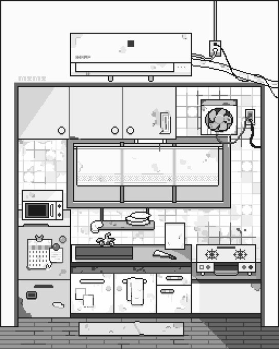 福岡の街で見かけた室外機などのボロをドット絵化する趣味があります。 ボロいものって可愛いよな??? #pixelart #ドット絵