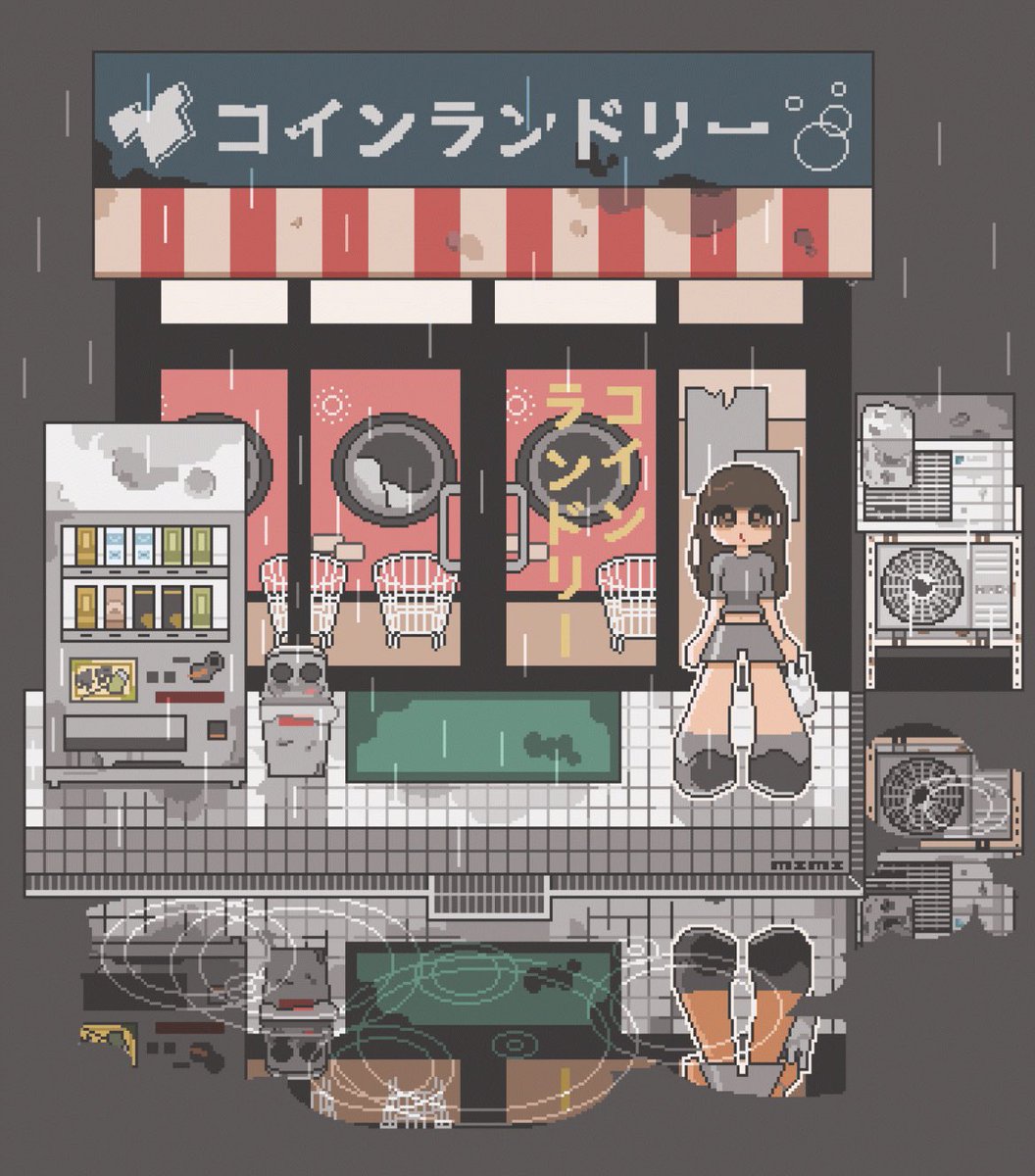 コインランドリーをつくっている。 #pixelart #ドット絵