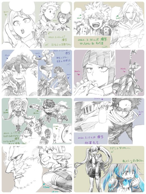 5 43 #今月描いた絵を晒そう 模写編。沢山のキャラを描けました! 皆で描いて楽しかったです。 22/03/30 20:50