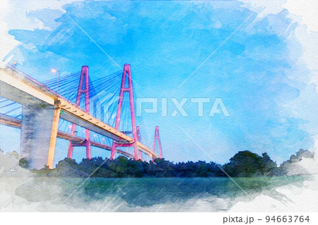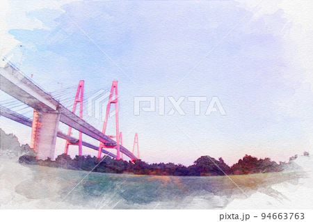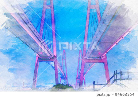 「愛知県海部郡飛島村の名港トリトン」 #水彩画 #オリジナル #クリエイターさんと繋がりたい 水彩画を使いたい方はこちらからどうぞ✨↓ ※売上の10%が難民・飢餓のこども達の命を救うために寄付されます✨ pixta.jp/f/Hiromi0525/p…