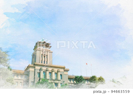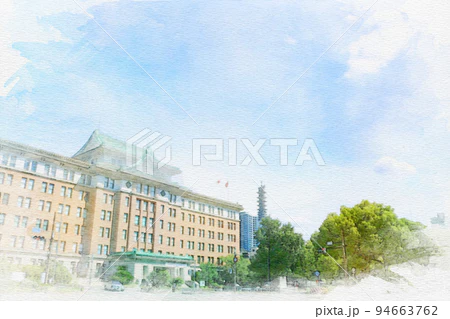 「愛知県名古屋市中区の名古屋市役所」 #水彩画 #オリジナル #クリエイターさんと繋がりたい 水彩画を使いたい方はこちらからどうぞ✨↓ ※売上の10%が難民・飢餓のこども達の命を救うために寄付されます✨ pixta.jp/f/Hiromi0525/p…